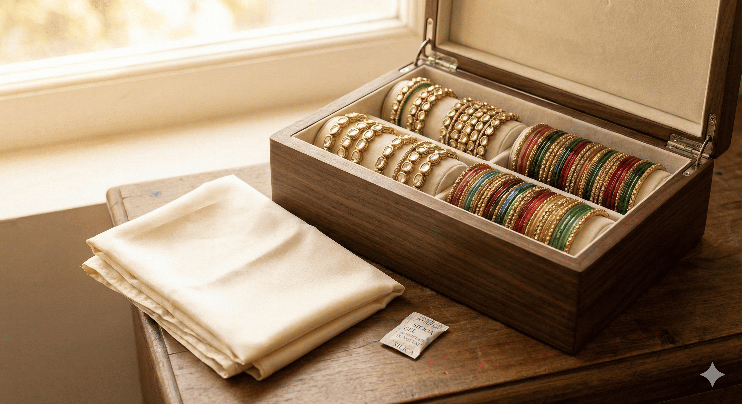Great jewelry deserves great care. Follow our expert tips to keep your Kundan, Meenakari, and glass bangles looking as brilliant as the day you received them.