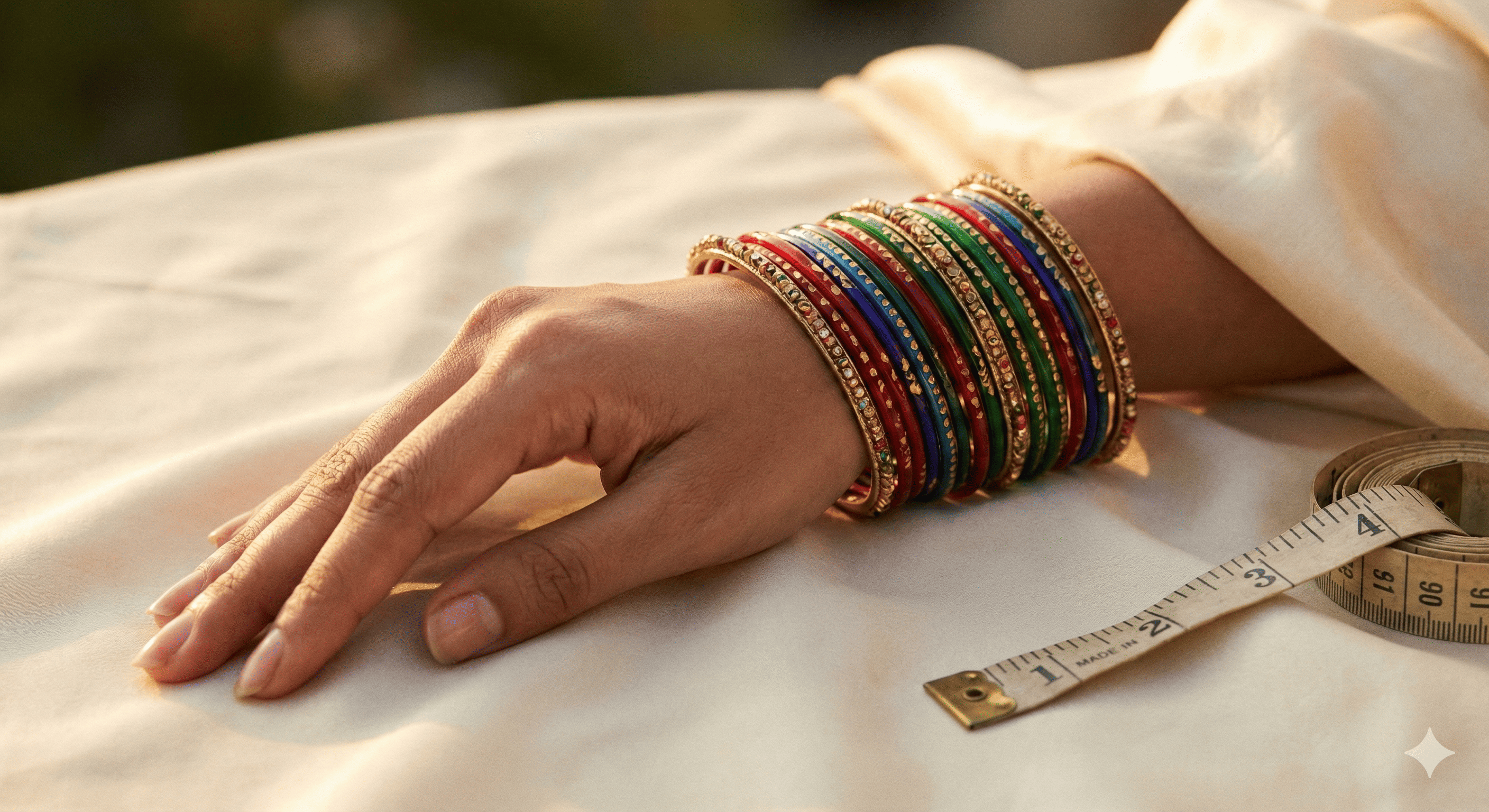 A comprehensive guide to finding your perfect Kundan and Meenakari bangle size using simple tools you already have.